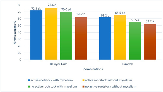 Results of the grafts succss of beech. Data followed by the same letters do not differ significantly at p = 0.05 according to Duncan’s test.