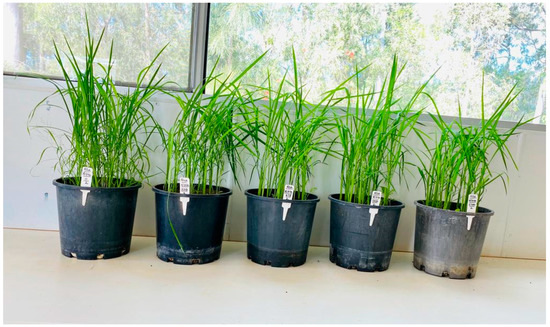 Australia is known for rice (Oryza sativa L.) cultivation globally due to its possession of the world’s highest average yield and level of high water-use efficiency [1,2]. Rice is grown only in a few pockets of Australia due to the strict water and land use required for its production. The main cultivation of rice occurs in the Riverina region, New South Wales. In the Queensland region, rice is grown in some parts of the Burdekin River [3]. Australian growers have placed a great deal of emphasis on the use of aerobic rice as growers have prioritized the efficient use of water resources, land use, and environmental protections for sustained production of rice [3,4,5].