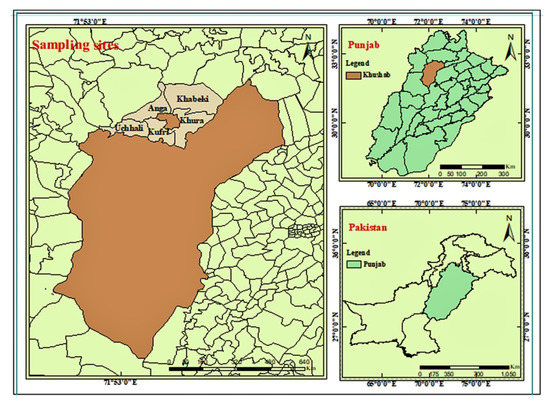 Geographical coordinates of the study sites of Soone Valley (Khushab) and the surrounding salt range of Pakistan.