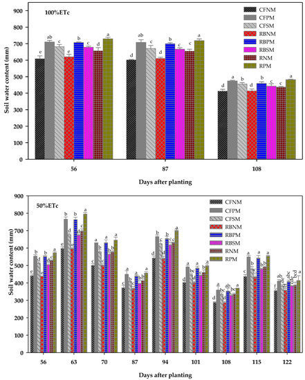 4.1. Effects of PPs and Mulching Practices on SWC