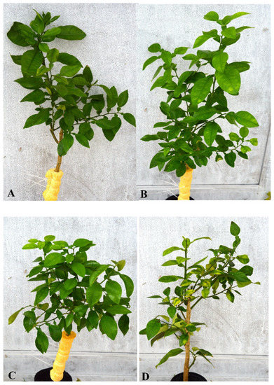 - Zhang, M.; Guo, Y.; Powell, C.A.; Doud, M.S.; Yang, C.; Duan, Y. Effective antibiotics against ‘Candidatus Liberibacter asiaticus’ in HLB-affected citrus plants identified via the graft-based evaluation. PLoS ONE 2014, 9, e111032. [Google Scholar] [CrossRef] [Green Version]