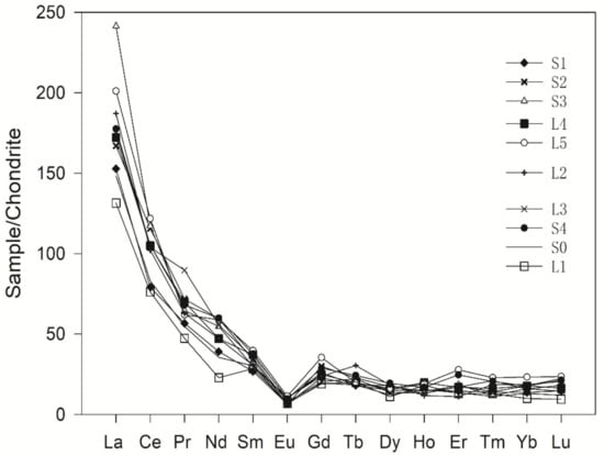 Rare earth element distribution of the Chaoyang profile. The chondrite data are cited from papers [42,43].