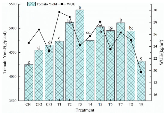 2.4.3. Tomato Yield and Water Use Efficiency