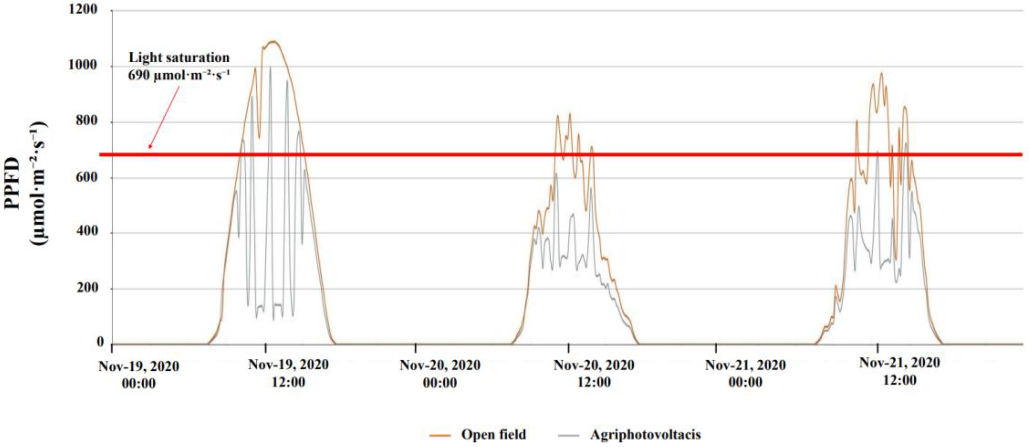 | PPFD | 635 ± 59 *** | 369 ± 60 |