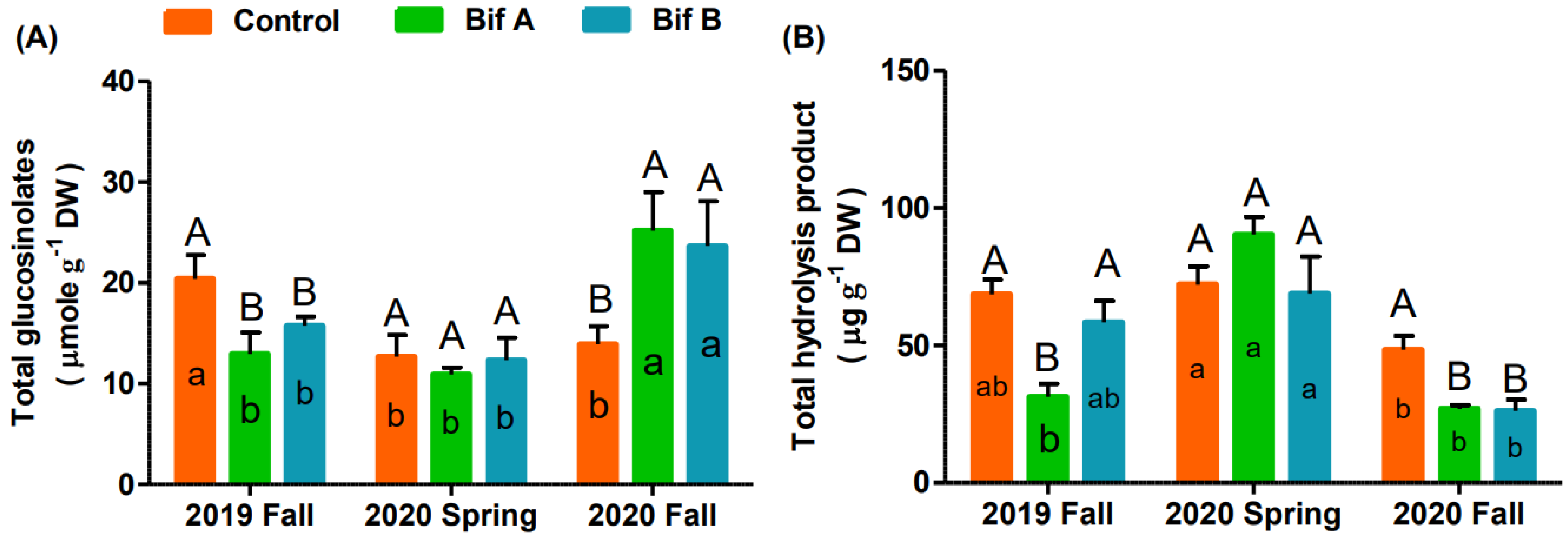 3.4. Quantitation of Glucosinolates and Their Hydrolysis Products