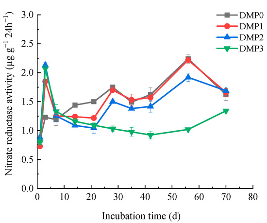 The dynamics of nitrite reductase activity under different doses of DMP.