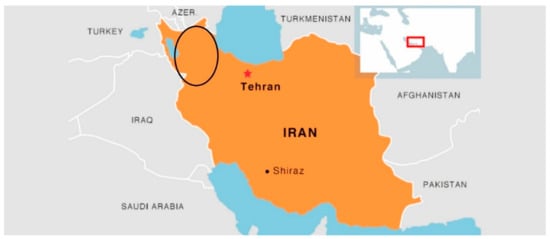 Geographic map (marked location) of sampling sites for S. lavandulifolia plants from west and northwest Iran.