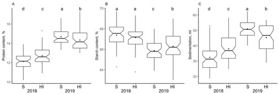 - Malik, A.H.; Kuktaite, R.; Johansson, E. Combined Effect of Genetic and Environmental Factors on the Accumulation of Proteins in the Wheat Grain and Their Relationship to Bread-Making Quality. J. Cereal Sci. 2013, 57, 170–174. [Google Scholar] [CrossRef]
