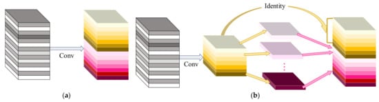 The feature extraction process of the model. (a) The convolutional layer. (b) The Ghost module.