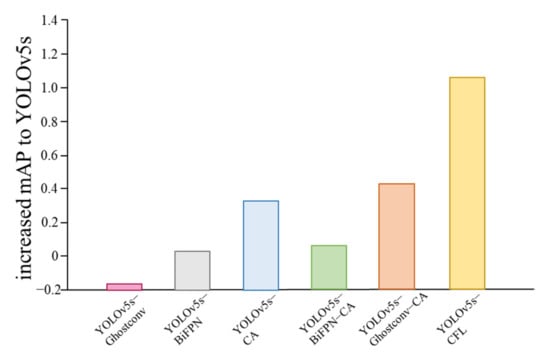 To explore the influence of different improvement methods on the model detection accuracy, different combinations of models were tested, and the test results are presented in Figure 9.