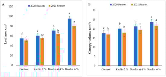 3.1. Effect of Kaolin Spry on Vegetative Growth