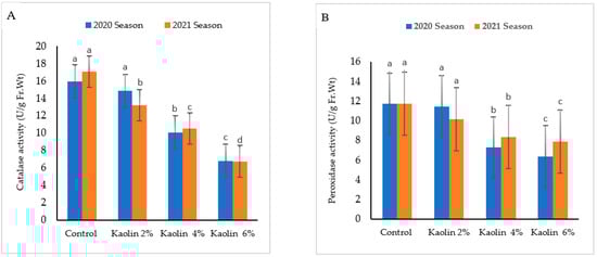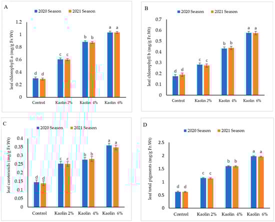 Hamdy, A.E.; Abdel-Aziz, H.F.; El-khamissi, H.; AlJwaizea, N.I.; El-Yazied, A.A.; Selim, S.; Tawfik, M.M.; AlHarbi, K.; Ali, M.S.M.; Elkelish, A. Kaolin Improves Photosynthetic Pigments, and Antioxidant Content, and Decreases Sunburn of Mangoes: Field Study. Agronomy 2022, 12, 1535. https://doi.org/10.3390/agronomy12071535