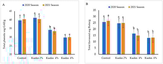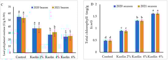 3.4. Effect of Kaolin on Total Phenolic and Total Flavonoid of Keitt cv. Leaf