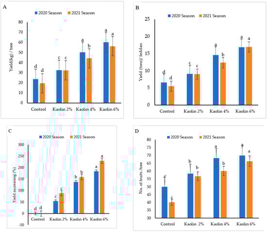3.5. Effect of Kaolin on Yield (kg/Tree)