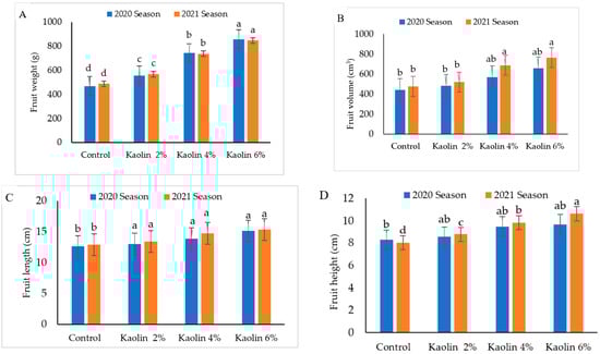 3.6. Effect of Kaolin on Fruit Physical Characteristics at Harvest