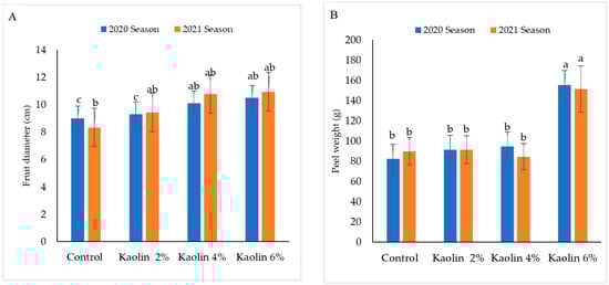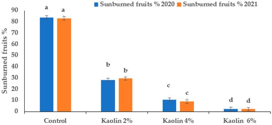 - Ennab, H.; El-Sayed, S.; El-Enin, M.A. Effect of kaolin applications on fruit sunburn, yield and fruit quality of Balady mandarin (Citrus reticulata, Blanco). Menoufia J. Plant Prod. 2017, 2, 129–138. [Google Scholar] [CrossRef]