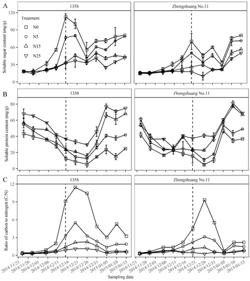 3.1. Floral Initiation Responses to Dynamic Changes of Soluble Sugar and Protein Contents of Leaf