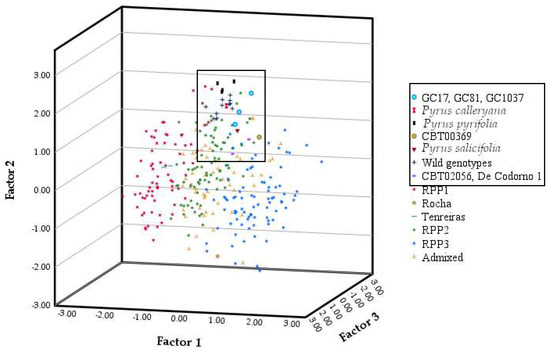 - Queiroz, Á.; Guimarães, J.B.; Sánchez, C.; Simões, F.; de Sousa, R.M.; Viegas, W.; Veloso, M.M. Genetic Diversity and Structure of the Portuguese Pear (Pyrus communis L.) Germplasm. Sustainability 2019, 11, 5340. [Google Scholar] [CrossRef] [Green Version]