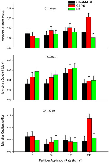 - Anderson, T.-H.; Domsch, K.H. Application of eco-physiological quotients (qCO2 and qD) on microbial biomasses from soils of different cropping histories. Soil Biol. Biochem. 1990, 22, 251–255. [Google Scholar] [CrossRef]