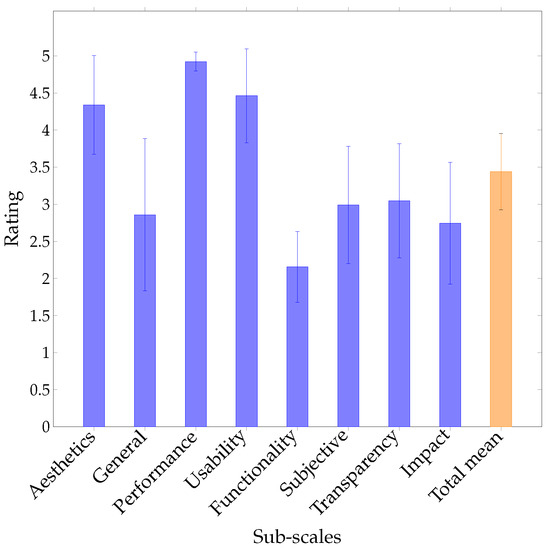 - Stoyanov, S.R.; Hides, L.; Kavanagh, D.J.; Wilson, H. Development and validation of the user version of the Mobile Application Rating Scale (uMARS). JMIR mHealth uHealth 2016, 4, e72. [Google Scholar] [CrossRef] [Green Version]