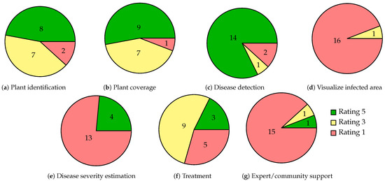 | Plantix—your crop doctor | 5.00 | 4.13 | 5.00 | 4.33 | 3.29 | 5.00 | 5.00 | 5.00 | 4.56 (1.16) |