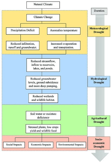 Drought is a serious problem that is limiting crop production and decreasing agricultural development around the world for a variety of reasons, including rare annual precipitation and uneven temporal distribution, high evaporation, and water scarcity []; these issues are becoming more serious as a result of the significant impacts of global climate change [,,] as shown in Figure 2. The main reason for using less water in agriculture is the rising demand caused by the world’s growing population. Water availability for agricultural producers is steadily declining because urban populations’ water needs are essentially increasing. Farmers are looking for novel approaches to enhance soil moisture to resolve both of these problems [,,]. Mulching is one traditional practice that can aid in the solution to this issue.