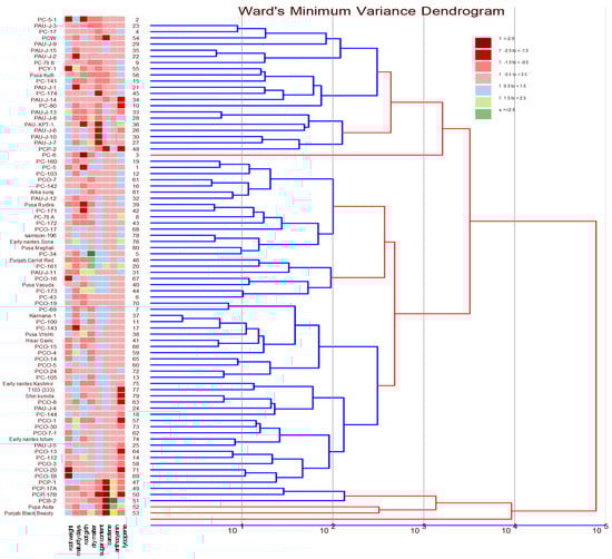 - Singh, S.R.; Ahmed, N.; Srivastva, K.K.; Singh, D.B.; Singh, A.; Yousuf, S. Genetic diversity assessment in European carrot genotypes. Hortic. Soc. India 2017, 74, 56–61. [Google Scholar] [CrossRef]