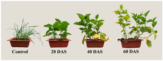 Solanum carolinense was transplanted into a pot 20, 40, and 60 days after sowing. One week after transplantation, 20 Festuca arundinacea seeds were sown into the pot containing 20-, 40-, and 60-day-old Solanum carolinense plants. After four weeks, the plants were harvested and plant height, root length, and fresh weight were measured, and the sample was stored in an oven at 70 °C for 48 h to measure dry weight.