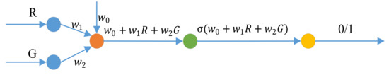 Based on the model of the decision boundary function , the Sigmoid function was used as the classifier, and the images of Longjing tea and Yuhua tea mentioned in Section 2.1 were processed; these were taken at different time periods under different light intensities.