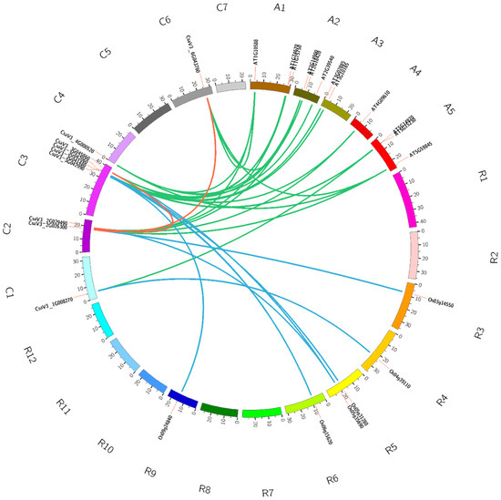 - Krzywinski, M.; Schein, J.; Birol, I.; Connors, J.; Gascoyne, R.; Horsman, D.; Jones, S.J.; Marra, M.A. Circos: An information aesthetic for comparative genomics. Genome Res. 2009, 19, 1639–1645. [Google Scholar] [CrossRef] [Green Version]