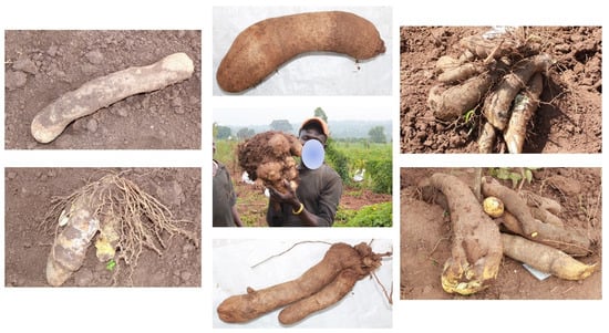 - Maroya, N.G.; Asiedu, R.; Kumar, L.P.; Lopez-Montes, A.; Orchard, J.; Ndiame, F. YIIFSWA Working Paper Series No. 1. Yam Improvement for Income and Food Security in West Africa, Ibadan, Nigeria. 2014. Available online: https://hdl.handle.net/10568/87917 (accessed on 10 August 2022).