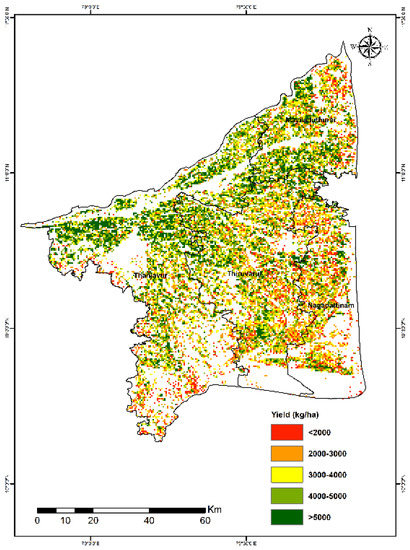 Rice yield map of Cauvery Delta Region using regression analysis.