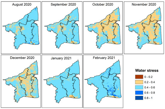 where Wstress = Water stress; LSWI max = maximum Land Surface Water Index.