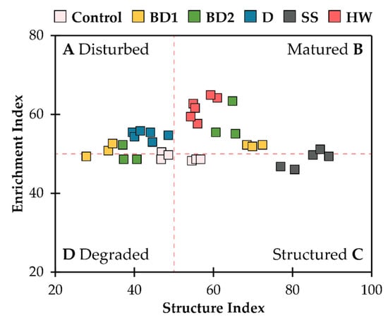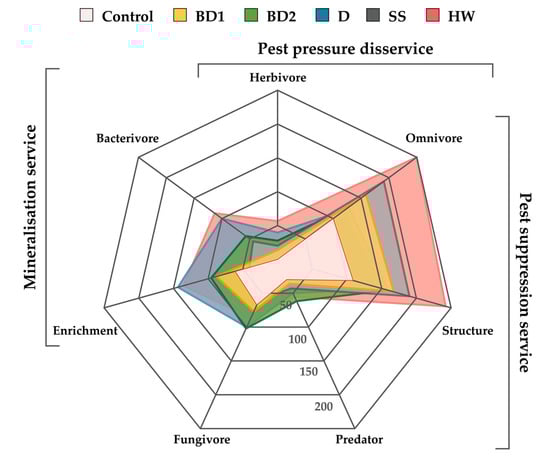 - Ferris, H.; Bongers, T.; de Goede, R.G.M. A Framework for Soil Food Web Diagnostics: Extension of the Nematode Faunal Analysis Concept. Appl. Soil Ecol. 2001, 18, 13–29. [Google Scholar] [CrossRef]