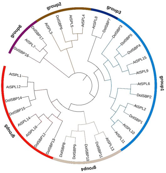 3.4.3. Conserved Motifs, Gene Structure, and Conserved Domains Analysis for DolSBPs