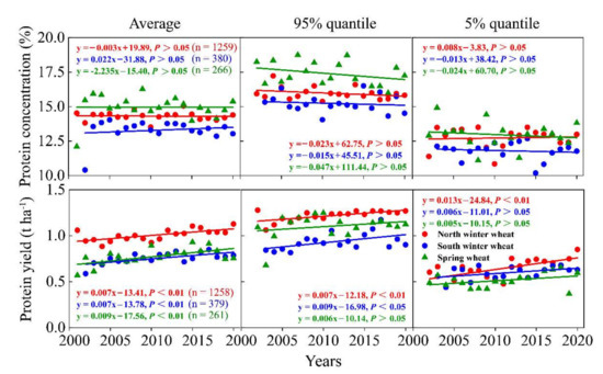 4.3. The Relationship between Wheat Yield and Protein Concentration