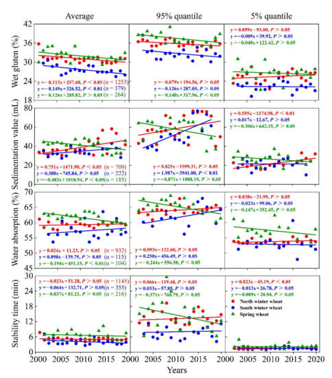 - Hu, X.; Sun, L.; Guiying, Z.; Wu, L.; Lu, W.; Li, W.; Wang, S.; Yang, X.; Song, J. Variations of Wheat Quality in China from 2006 to 2015. Sci. Agric. Sin. 2016, 49, 3063–3072. [Google Scholar]
