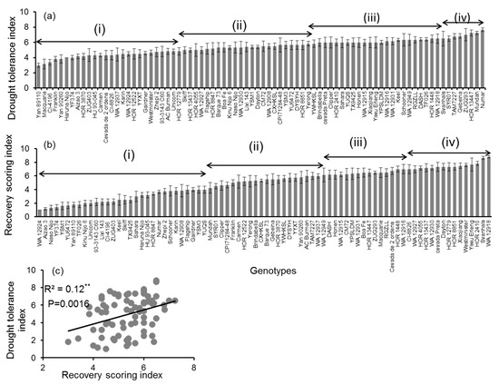 4.1. Drought Tolerance and Recovery Indices Were Correlated with One Another