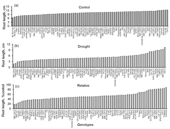4.3. PEG-Induced Drought Stress and Root Length