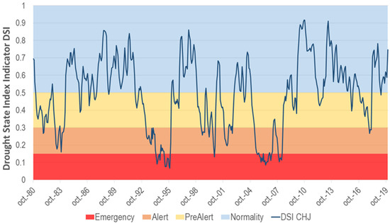 Drought State Index in the Jucar river basin DSICHJ (1980–2019). Source: modified from [58].