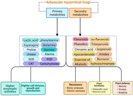 1.3. The Effects of AM Fungi on the Primary and Secondary Metabolites