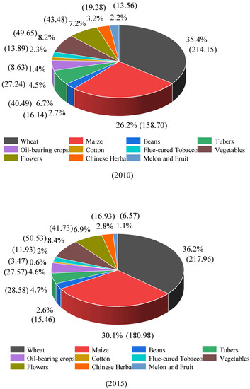 3.1. Spatial Distribution of Main Crops Water Requirement