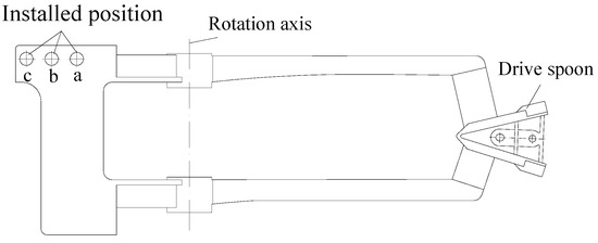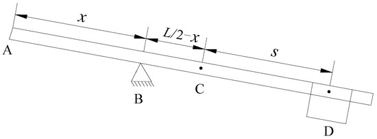 where L is the length of the drive arm (m); s is the distance between C and D (m); m is the mass of the drive arm (kg); M is the mass of the counterweight (kg). Because the distance between B and D was the distance between the counterweight-installed position and the rotation axis, Equation (4) can be simplified to: