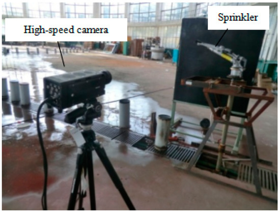 The test measurements of frequency and duration time were conducted using the test analysis system at the sprinkler irrigation laboratory of Jiangsu University. A centrifugal pump supplied water to the test system from a constant level reservoir. The working pressure was measured at the base of the sprinkler head using a pressure gauge with an accuracy tolerance of 0.4%. The high-speed camera of Motion pro Y4lm-8 (Integrated Device Technology, Inc. San Jose, CA, USA) was used. The maximum resolution is 1024 × 1024. The maximum shooting speed at full resolution is 4000 frames per second, and it can shoot continuously for about 45 s at full resolution. Figure 2 shows a general view of the experimental setup.