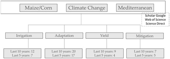 This literature review was carried out according to the following criteria (Figure 1): (i) were selected Scopus/Elsevier/Wiley peer-reviewed articles that are listed in Scholar Google, Web of Science and in Science Direct; (ii) the articles cited focus mainly on the impacts of climate change on maize crop namely on the irrigation water requirements; (iii) articles for different regions were selected but most of them focus on the Mediterranean region.