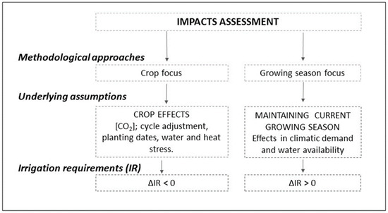 The most common methodological approaches to obtain CC impacts on irrigation requirements.