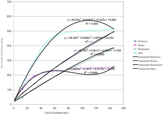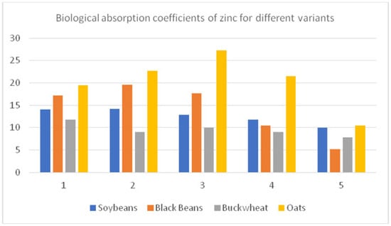 - zinc is more actively concentrated in oats, followed by soybean. At Zc ≥ 60, the increase in the concentration of zinc in the bean phytomass significantly slows down;