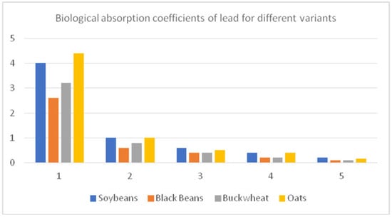 - lead is more actively concentrated in soybeans, followed by oats. Lead is much less concentrated in the biomass of buckwheat and beans;