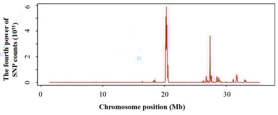 Distribution of SNP loci on chromosome 3. Peak at the position of 20,546–21,231 Kb on the chromosome 3 of indica cultivar 9311.