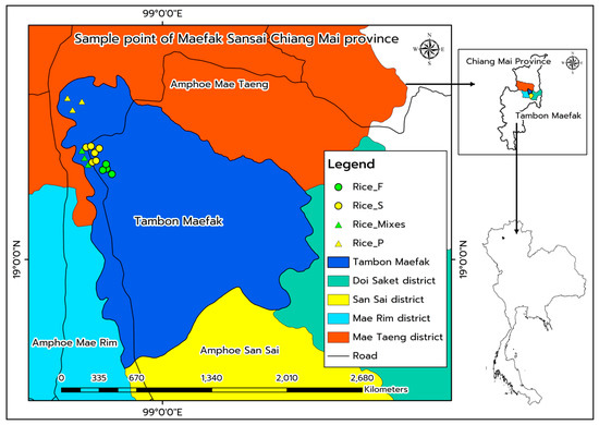 Study sites of soils planted with rice in various rotational patterns: A case study of Mae Fak subdistrict, Sansai district, Chiang Mai province, northern Thailand.